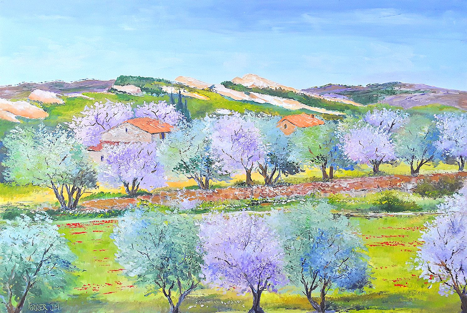 Peinture à l'huile au couteau: Entre amandiers et oliviers