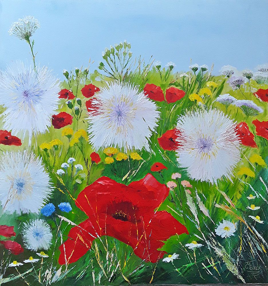 Peinture à l'huile au couteau: Bouquet champêtre