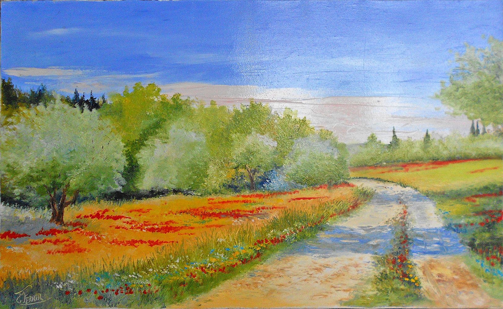 Peinture à l'huile au couteau: Campagne provençale