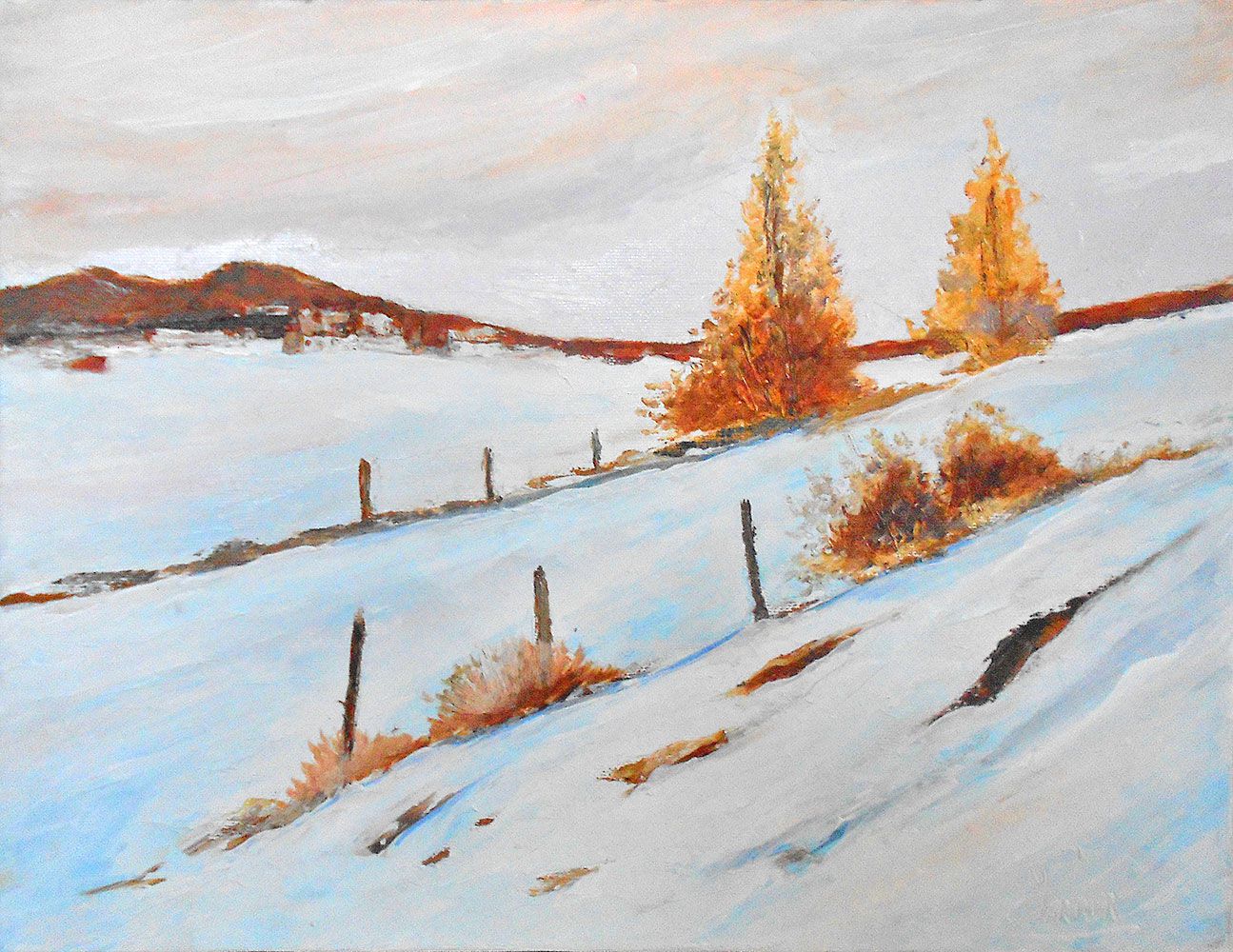 Peinture à l'huile au couteau: Neige sur le plateau