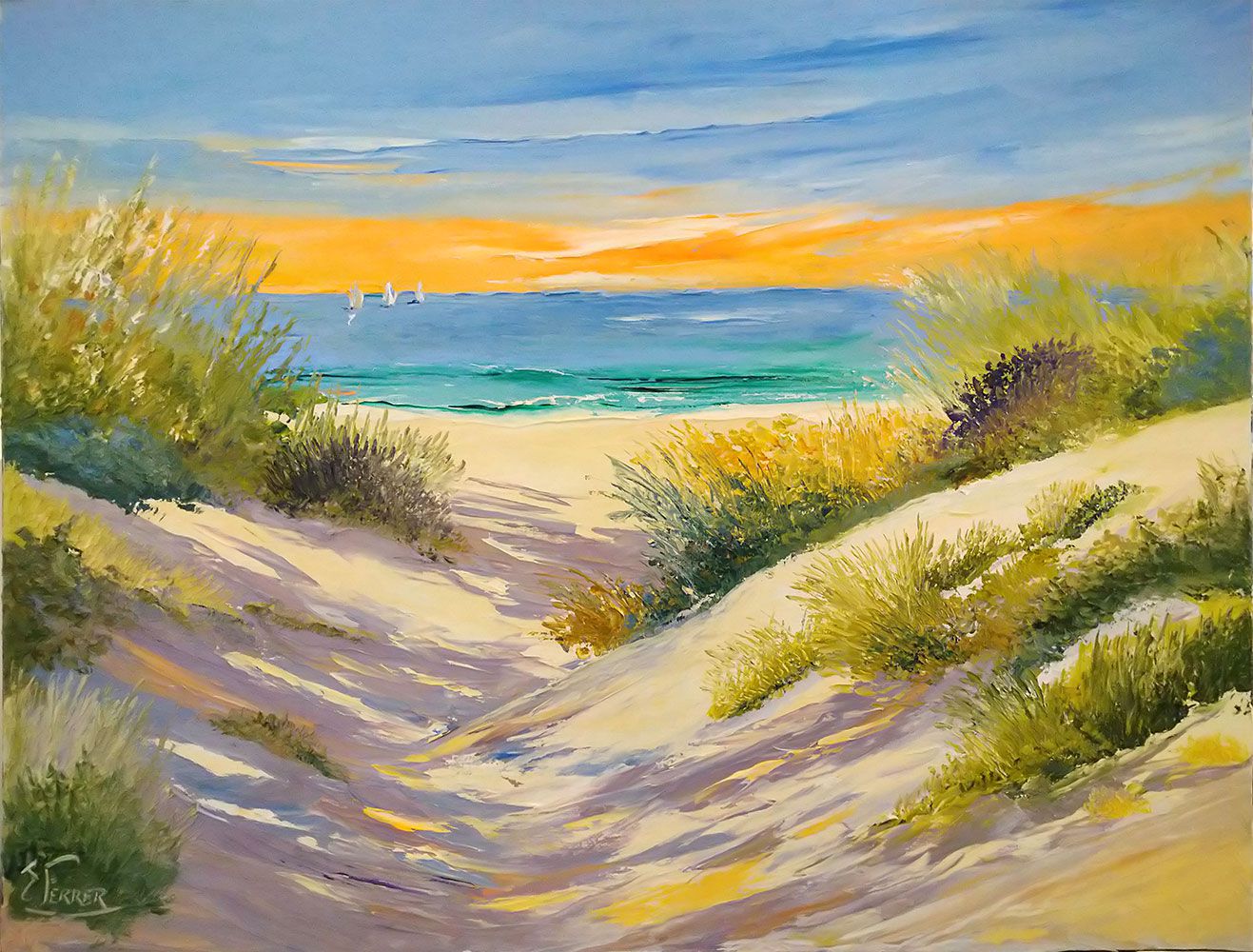 Peinture à l'huile au couteau: Le chemin des dunes