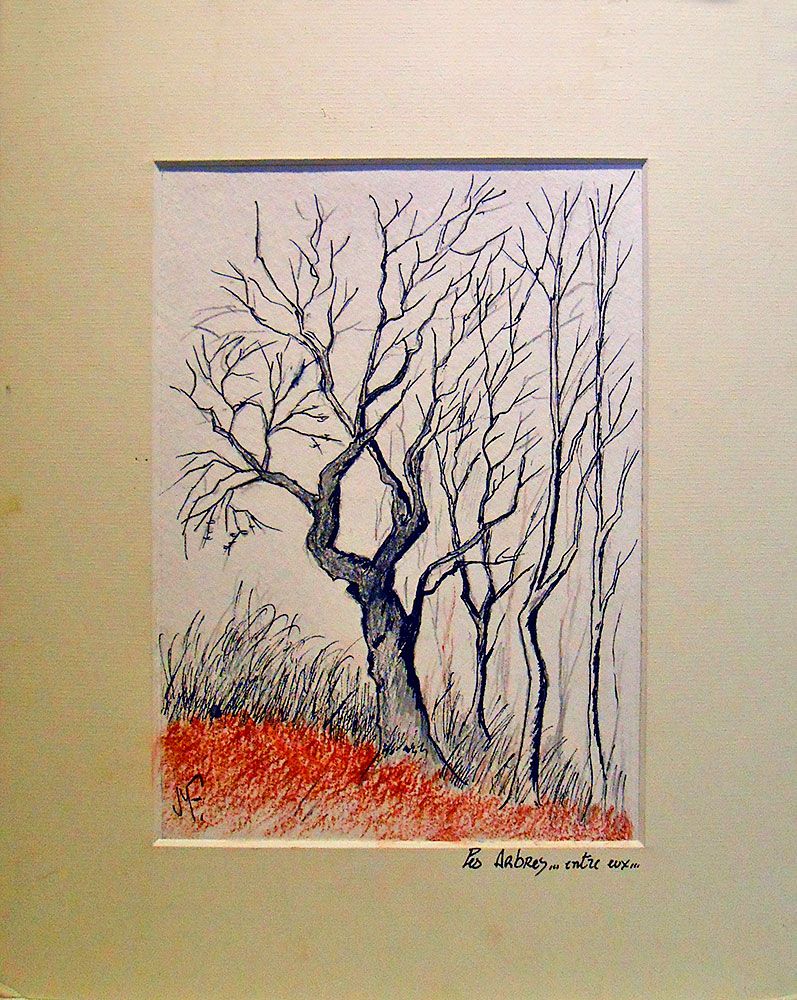 Dessin aquarellé+encre de chine: LES ARBRES EN HIVER