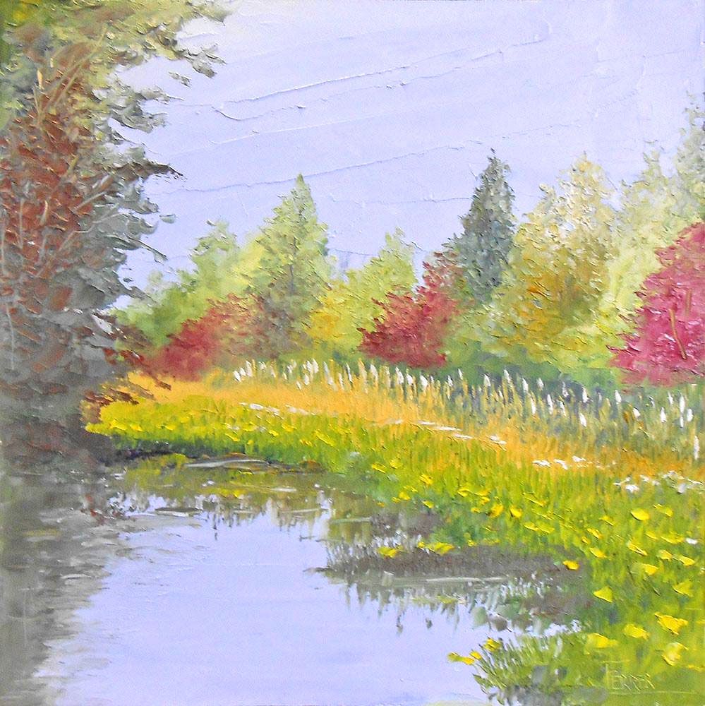 Peinture à l'huile au couteau sur toile carrées sans châssis: REFLETS
